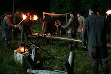 Bei Nacht treiben die Arbeiter die Pipeline voran
