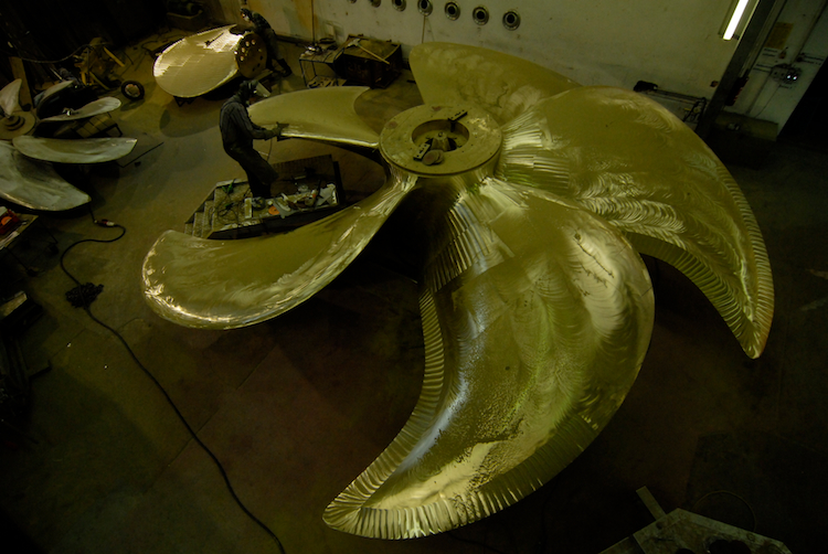Untertitel: Den letzten Schliff bekommen die gigantischen Schrauben von Hand