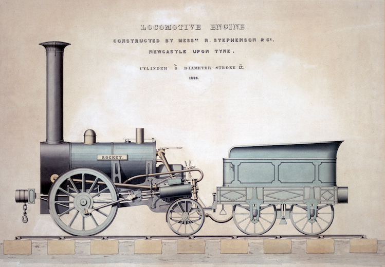 Untertitel: Die "Rocket" befuhr die Strecke Liverpool - Manchester von 1826-1829